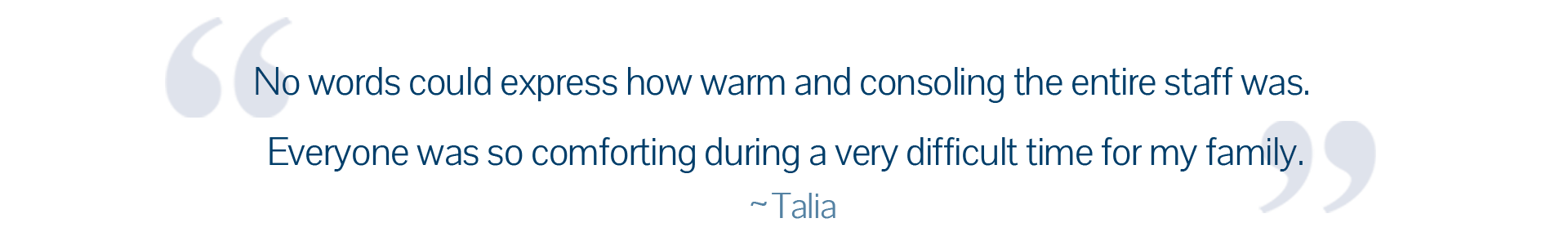 Our goal is to help bring your family together to focus on your healing while celebrating your loved one’s life, and we would be honored to help preserve your family’s memories.